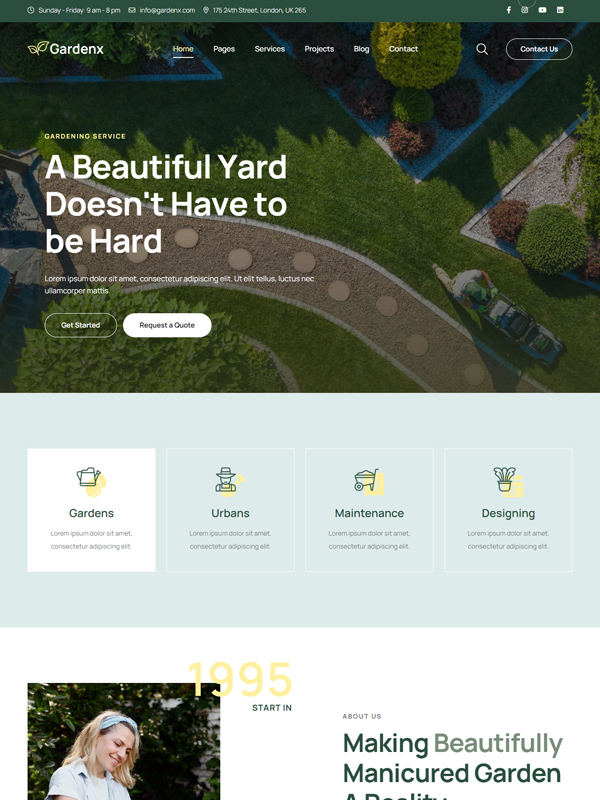 Gardenx is a fresh and modern template for Gardening & Landscaping Services,